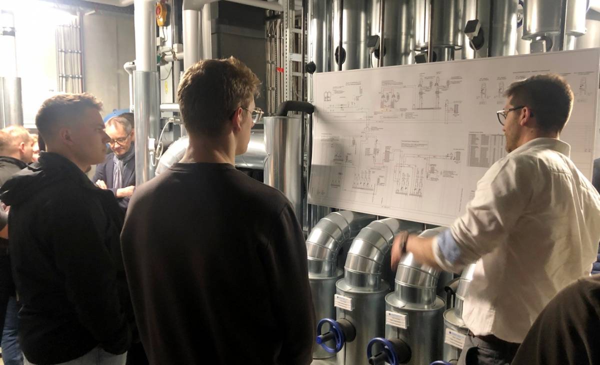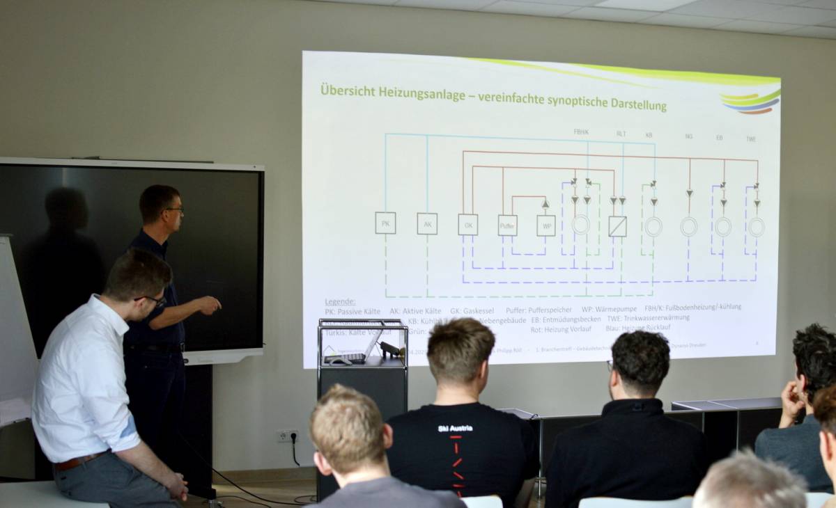 Nach einer Einführung durch den Vorstandsvorsitzenden Herrn B. Klimes und einer kurzen Objektvorstellung durch Herrn M. Eulitz, Gebäudetechniker bei Dynamo, gab unser Geschäftsführer Gregor Scheffler interessante Einblicke in die Planungsphilosophie unseres Büros. Anhand des Projekts zeigte er auf, wie wir durch konstruktive Zusammenarbeit aller Beteiligten zu zielorientierten Lösungen gelangen. Besonders im Fokus stand die zukunftsweisende Anlagentechnik mit der intelligenten Kombination verschiedener Energiesysteme wie Wärmepumpe, Speicherung, Wärmerückgewinnung und Solarenergienutzung.