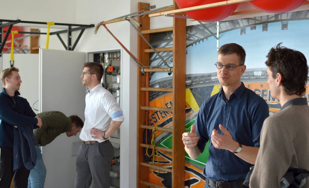 Am 01. April 2025 erlebten Studierende der Gebäude- und Energietechnik Versorgungstechnik zum Anfassen. In Zusammenarbeit mit dem Verein zur Förderung der Ingenieurausbildung der Gebäude- und Energietechnik luden wir Studierende in die AOK Plus Walter-Fritzsch-Akademie, dem Trainingszentrum von Dynamo Dresden, ein. Mit 34 Teilnehmenden war die Resonanz beachtlich! Wir freuten uns über das große Interesse von engagierten Studierenden sowie von Fachkräften aus Planungsbüros und Hochschuldozenten.
