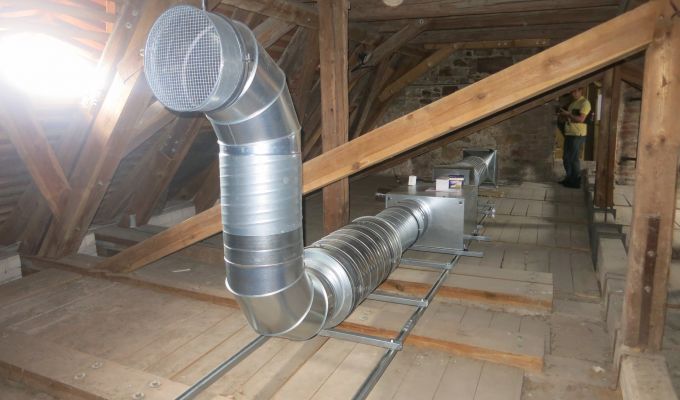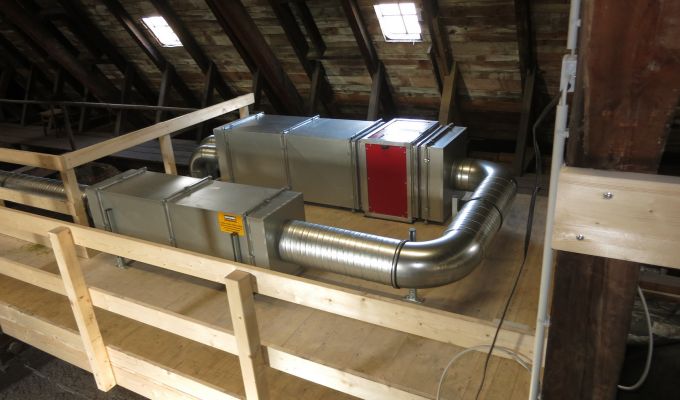 Zur Stabilisierung des Raumklimas wurde ein klimaregulierendes Lüftungssystem errichtet, das unter Berücksichtigung bauphysikalischer Zusammenhänge, insbesondere im Sommerhalbjahr, die Raumluftfeuchte in einem zulässigen Toleranzbereich hält.