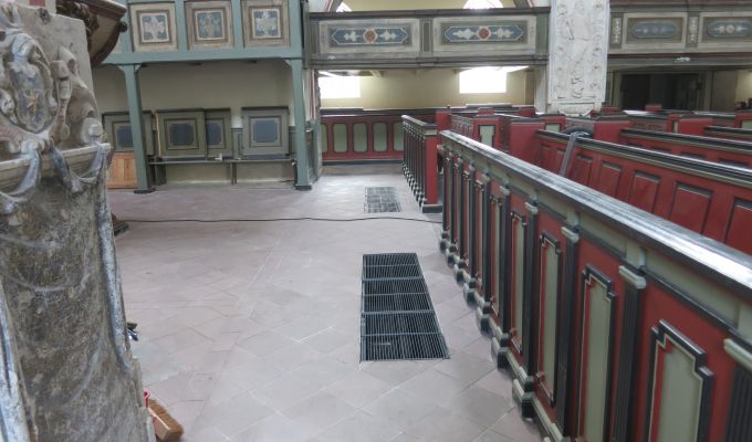 In die innen komplett sanierte Kirche wurde eine neue Heizungsanlage, bestehend aus Warmluftheizung und statischen Heizflächen sowie einer klimaregulierenden Lüftungsanlage, installiert.