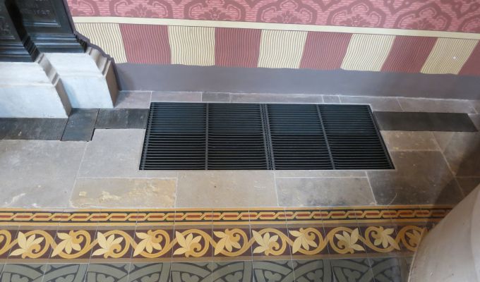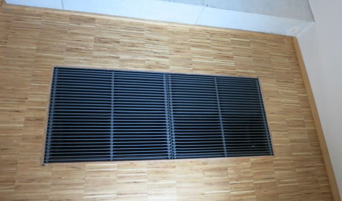 Wärmeverteilung als Kombination aus statischen Heizflächen und Fußbodenheizung, u.a. mit patentierten PYD-ALU® - Thermoleitblechen (Kapelle)