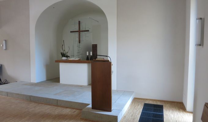 Durch Modernisierung Innenraum unter Beibehaltung des Charakters wurde Umbau zu multifunktionaler Kirchennutzung umgesetzt.