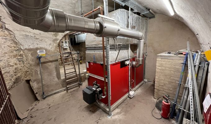 Ersatz der alten verschlissenen Niederdruckdampfheizung mit Festbrennstoffkessel durch eine neue Heizungsanlage zur ganzjährigen Nutzung (Gottesdienste, Konzerte & sonst. Veranstaltungen)