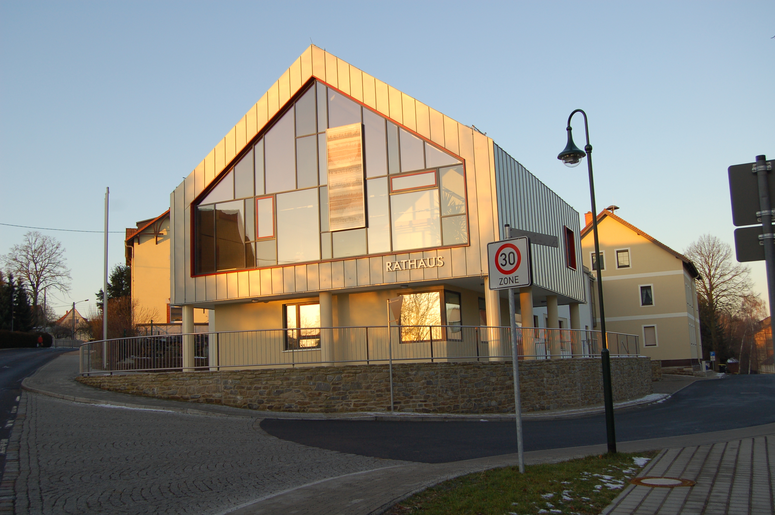 Das Rathaus der Gemeinde Halsbrücke wurde auf dem Grundstück des Bauherrn als Erweiterungsbau des Bestandsgebäudes im Passivhausstandard neu errichtet.