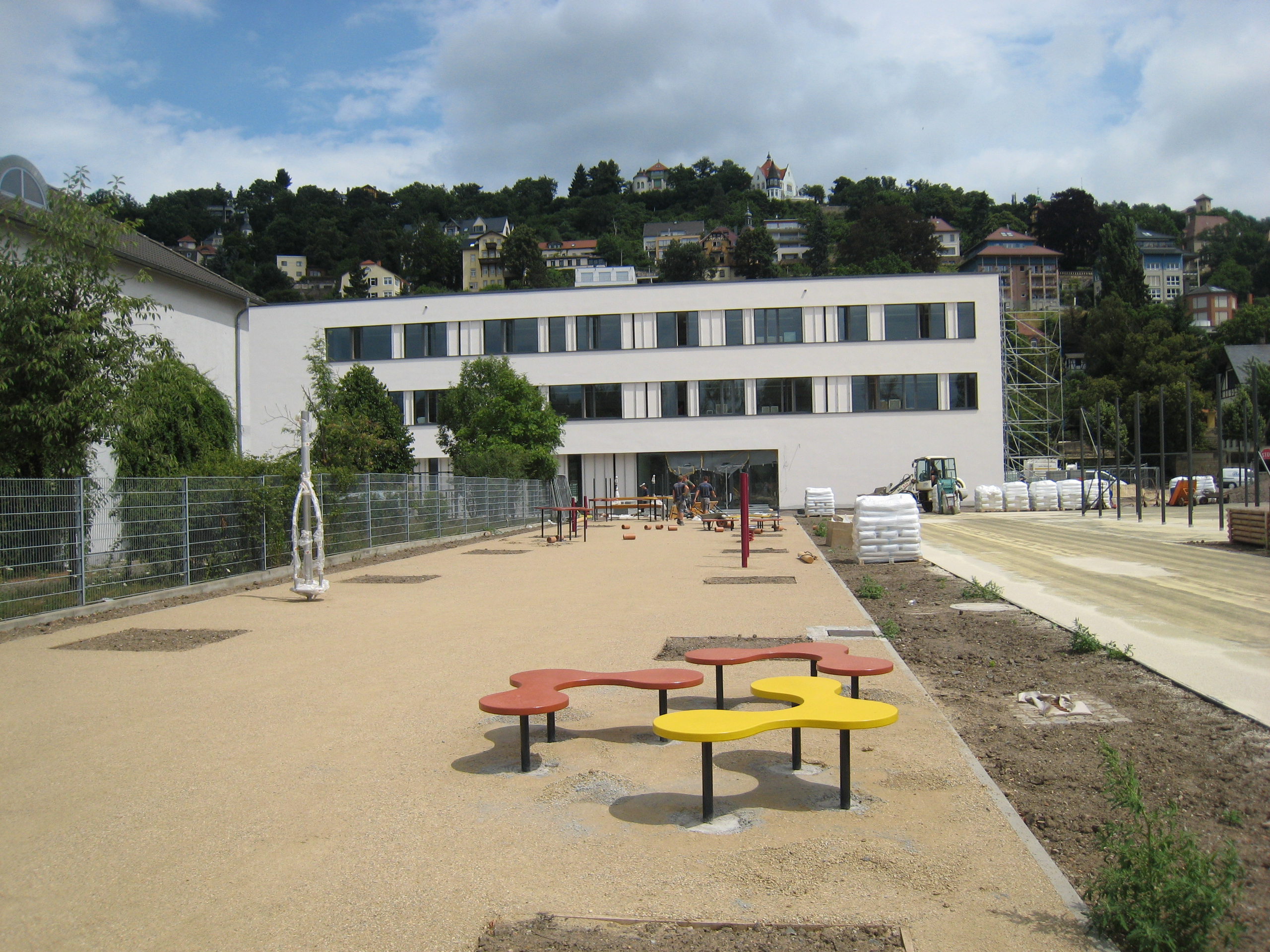 Das Gebäude der früheren Bezirksschule in Dresden-Friedrichstadt wurde umfangreich saniert und durch einen Neubau erweitert. Zusätzlich wurde eine neue Einfeldsporthalle auf dem Gelände errichtet.