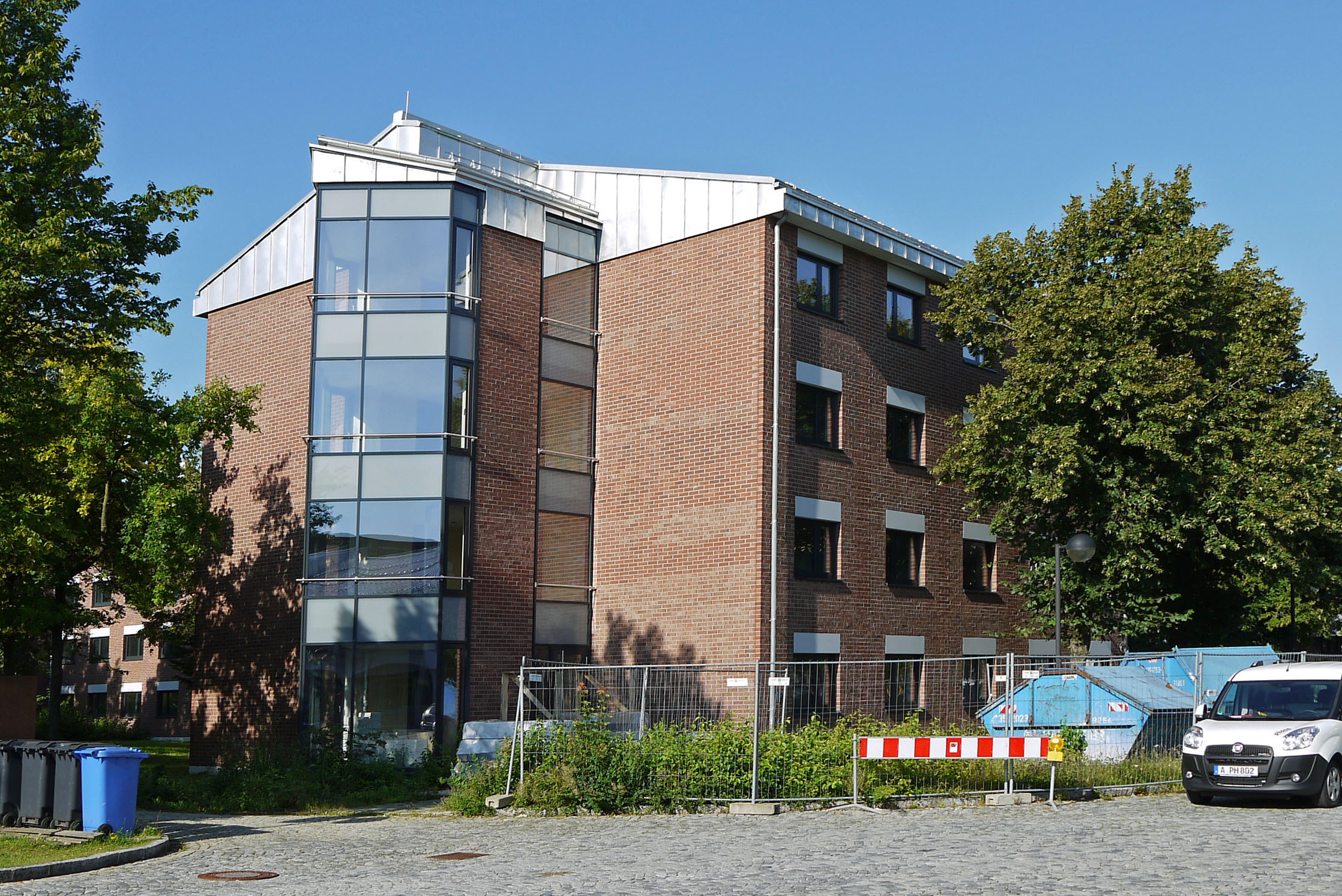 Für das Gebäudeensemble der Europäischen Schule in München wurden im Rahmen einer energetischen Sanierung gebäudetechnische Anlagen erneuert und eine Photovoltaikanlage auf den Dächern der unter Ensembleschutz stehenden 8-Eck-Häuser errichtet.