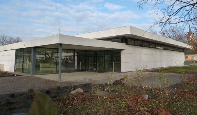 Bauherr: Landeshauptstadt Dresden - Amt für Hochbau und ImmobilienverwaltungDas Gebäude der früheren Bezirksschule in Dresden-Friedrichstadt wurde umfangreich saniert und durch einen Neubau erweitert. Zusätzlich wurde eine neue Einfeldsporthalle auf dem Gelände errichtet.