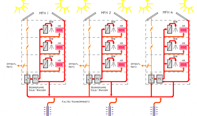 Der eigentlichen Sanierungsplanung wurde die Erstellung eines Quartier-Energiekonzeptes vorgeschaltet. Dieses hatte zum Ziel, verschiedene Optionen der regenerativen Wärme- und Energieerzeugung am Standort aufzuzeigen und unter den Aspekten der Energieeffizienz, des CO2-Ausstoßes, des Investitionsvolumens und der Gesamtwirtschaftlichkeit zu bewerten.